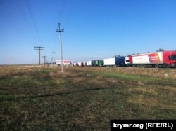 «На прапускных пунктах Чонгар, Чаплінка, Каланчак пачалася блякада грузавікоў, якія накіроўваліся на паўвыспу», — напісаў ён на сваёй старонцы ў фэйсбуку ў нядзелю каля поўдня.