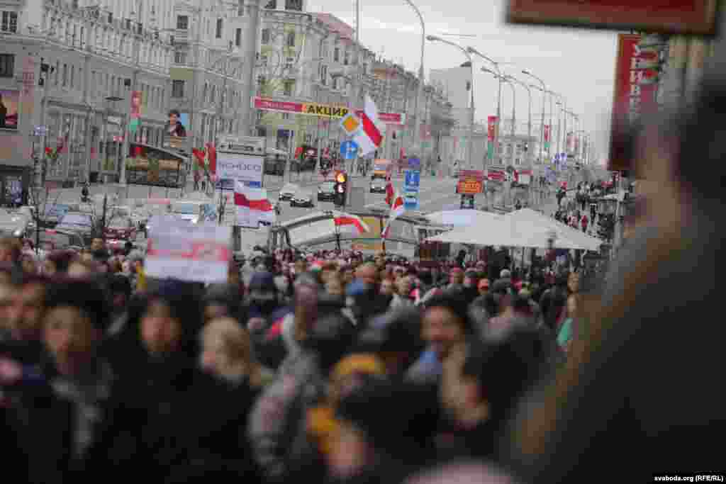 ФОТАГАЛЕРЭЯ: Шэсьце нацыянальнага сьцяга прайшло цэнтральнымі вуліцамі Менску