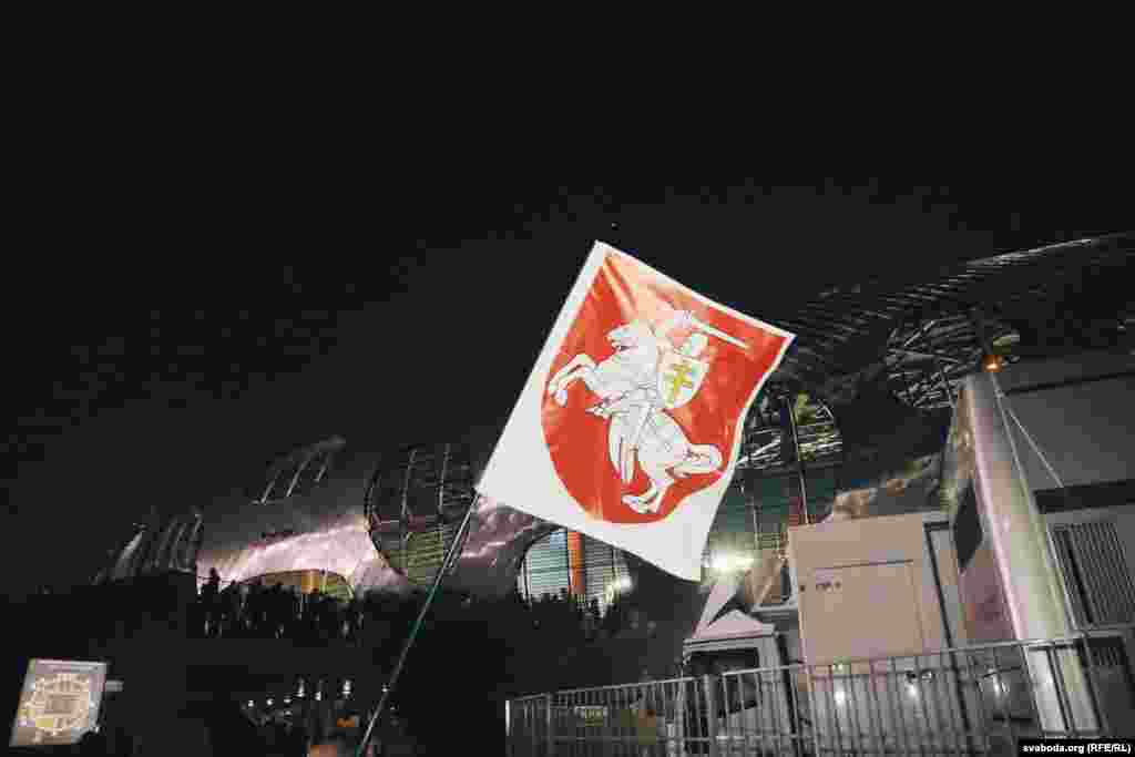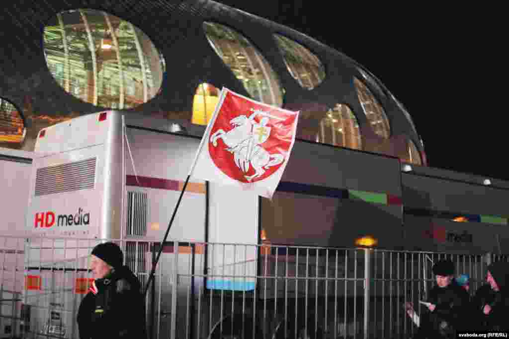 Перад гульнёй у Барысаве заўзятары разгарнулі сьцяг у выглядзе «Пагоні» і раздавалі ўлёткі з тлумачэньнем значэньня герба.