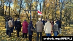 Удзельнікі акцыі таксама прасьпявалі «Магутны Божа» на месцы расстрэлаў у Лошыцы.