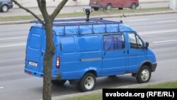 Усю дарогу на Курапаты ўдзельнікаў шэсьця суправаджае блакітны міліцэйскі мікрааўтобус «Газэль».