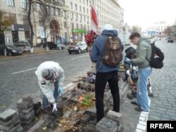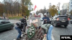 Сёньня у Кіеве з нагоды Дзядоў актывісты зладзілі прыбіраньне «народнага» помніка Міхасю Жызьнеўскаму на праезнай частцы вуліцы Грушэўскага.