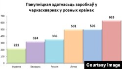 Вольга Яўсеева кажа, што па пакупніцкай здольнасьці ў параўнаньні з суседнімі дзяржавамі Беларусь па-ранейшаму ў аўтсайдэрах. Горш справы стаяць толькі ва Ўкраіне, якую ўжо амаль два гады скаланае глыбокі эканамічны крызіс, выкліканы расейскім умяшаньнем. Мясцовыя жыхары за сваю сярэднюю зарплату могуць набыць усяго 221 ЧС.