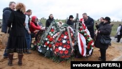 На могілках выступіла жонка Віктара Сырыцы Тацяна, якая заклікала мясцовых актывістаў зьбірацца і працягваць справу яе мужа: