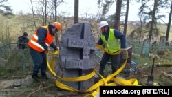 Помнік на магілу Барадуліна ўсталёўвалі 25 чалавек і адзін верталёт
