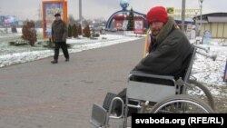Інвалід: «Зайцаў Эдуард Уладзіміравіч, 1968 году нараджэньня. На вуліцы апынуўся, бо няма ані дома, анічога. Ногі страціў — адмарозіў ужо гады два таму. Во, добры чалавек вазок падараваў. Што яшчэ сказаць? Гаварыць жа няма чаго. Вось так патроху й жыву».