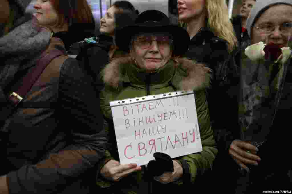 «Такога ніколі не было – каб так цёпла віталі людзі і цалкам ігнаравала дзяржава», сказала расчуленая пісьменьніца пасьля выхаду з залі прылётаў.