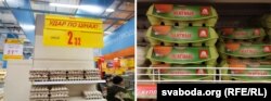 Кіло мясцовага цукру: 11 500 у Кіеве і 12 500 у Менску. Алей: 17 900 у Кіеве і 26 600 у Менску. Дзясятак яек: 17 900 у Кіеве і 21 400 у Менску. 400-грамовы пачак маянэзу будзе каштаваць 7 300 у Кіеве і 16 400 у Менску.