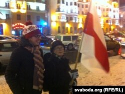 68-гадовая грамадзкая актывістка Ніна Багінская ў навагоднюю ноч у Менску прайшла зь бел-чырвона-белым сьцягам ад Акадэміі навук да Плошчы Незалежнасьці. І потым са сьцягам вярнулася грамадзкім транспартам дахаты.