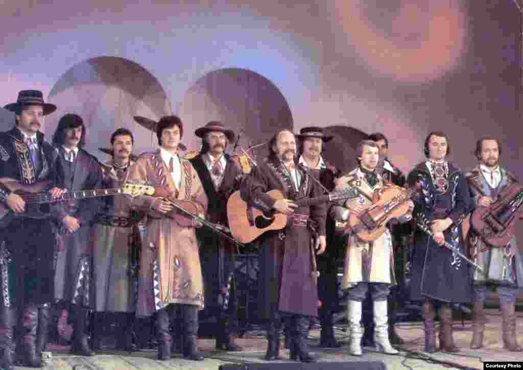 Гэты здымак «Песьняроў» з аўтографам Уладзімера Мулявіна захоўваўся ў архіве Ларысы Геніюш.