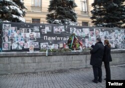 Прэзыдэнт Украіны ўсклаў кветкі да помніка Міхаілу Жызьнеўскаму і Сяргею Нігаяну. Маці Міхала згадвае, што званьне Героя Ўкраіны далі ўсім зь «Нябеснай сотні», акрамя трох замежнікаў.