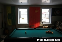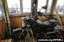 Усё на сядзібе зроблена сваімі рукамі. На вэрандзе — стары матацыкл, у пакоі — більярдны стол, плязма і вялізны савецкі сьцяг.
