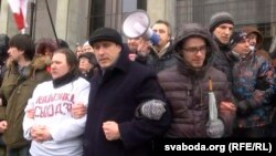 Перад гэтым супрацоўнікі МУС зрабілі некалькі спробаў выціснуць Анатоля Лябедзьку і Аляксандра Макаева, якія выступаюць на мітынгу з мэгафонамі. Удзельнікі мітынгу стварылі шчыльны ланцуг і не пусьцілі міліцыянтаў. Анатоль Лябедзька заклікаў прадпрымальнікаў не баяцца і не сыходзіць з плошчы. Людзі скандуюць «Ганьба! Пайшлі прэч!».