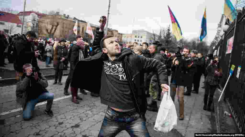 У Кіеве пад пасольствам Расеі сабраліся некалькі соцень актывістаў, каб выказаць патрабаваньне вызваліць лётчыцу Надзею Саўчанку, якую трымаюць у расейскім СІЗА. У адрозьненьне ад падобнай мірнай акцыі на плошчы Незалежнасьці, тут людзі перайшлі да актыўных дзеяньняў.