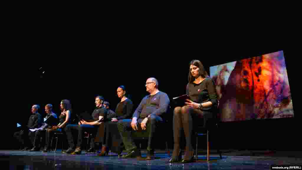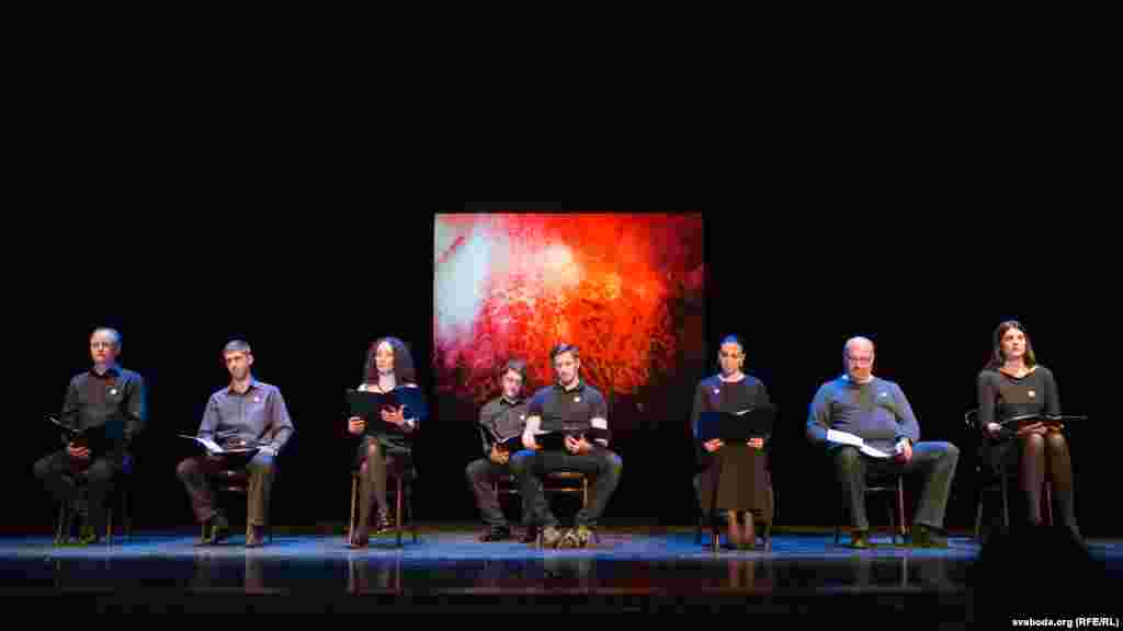 Сёньня ў Менску на сцэне тэатра імя Янкі Купалы сем вядомых беларусаў Беларусі зачыталі дакумэнтальны тэатральны твор.