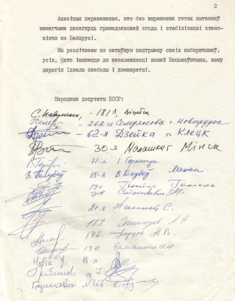 Захаваўся і машынапісны арыгінал заявы з подпісамі дэпутатаў пад патрабаваньнем аб скліканьні сэсіі – менавіта мне (адразу пасьля прыезду з Віцебска) давялося зьбіраць тыя подпісы. Гэта прыблізна 6-7 красавіка, ня думаю, што гэта “значнае спазьненьне”.