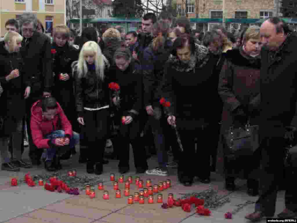 Акцыя жалобы ў Віцебску: людзі ўшаноўваюць памяць загінулых у тэракце ў менскім мэтро
