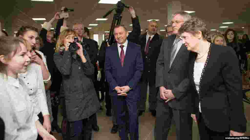 На ўрачыстай цырымоніі ў менскай школе прысутнічалі намесьніца генэральнага сакратара ААН Хэлен Кларк, міністар замежных спраў Беларусі Ўладзімер Макей і часовы павераны ў справах ЗША ў Беларусі Скот Роланд.