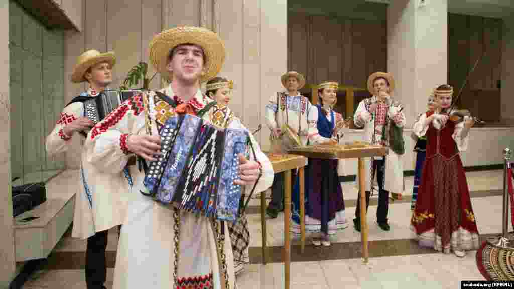 Аляксандр Каваленя, акадэмік-сакратар аддзяленьня гуманітарных навук і мастацтваў НАНБ. Аляксандар Лакотка, дырэктар Інстытуту мастацтвазнаўства, этнаграфіі і фальклору імя Кандрата Крапівы НАНБ, першы намесьнік міністра адукацыі Вадзім Богуш