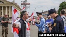 Бел-чырвона-белыя сьцягі ў цэнтры Менску