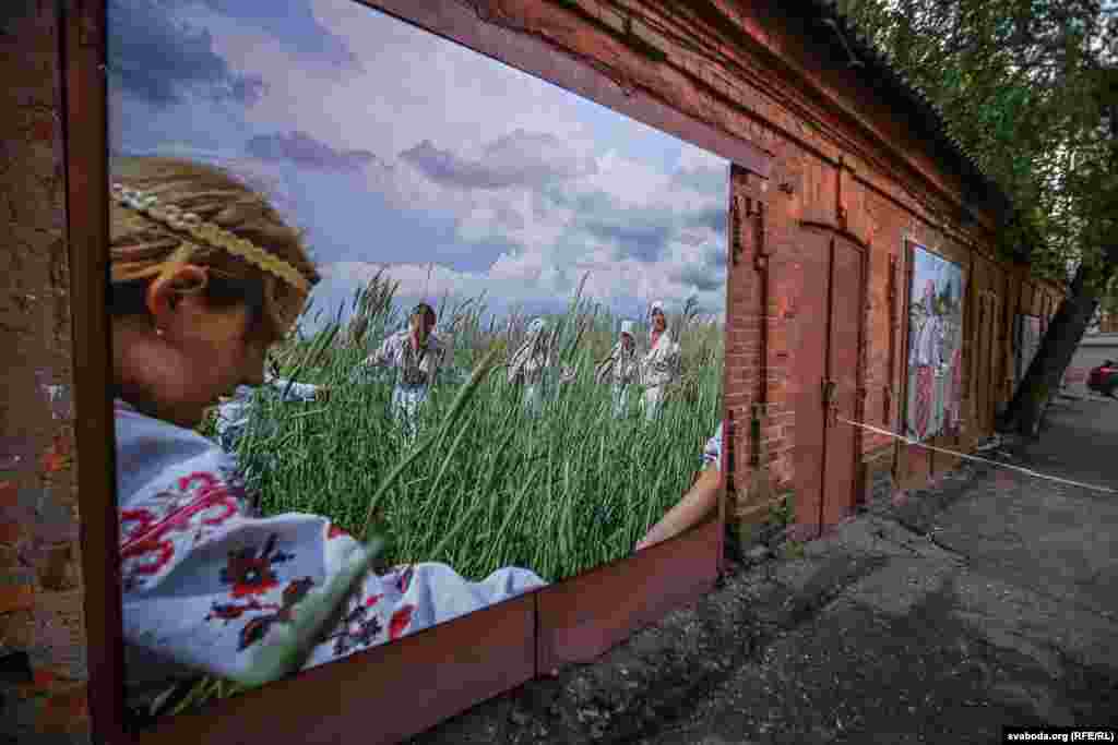 У цэнтры Менску фотаздымкі жанчын у нацыянальных строях