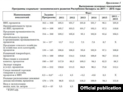 — Падзеньне экспарту па ўсіх напрамках, прыбыткаў прадпрыемстваў і бюджэту. Гэта тлумачыцца крызісам у Расеі і ва Ўкраіне, бо «дабрабыт залежыць ад зьнешніх фактараў, найперш пакупніцкай здольнасьці гандлёвых партнэраў». І гэтым тлумачыцца тое, што «шэраг намечаных задачаў» на мінулую пяцігодку ня быў вырашаны: зьнешнія абставіны, як сьцьвярджаецца, былі «не адзінай прычынай» эканамічных цяжкасьцей, а толькі «абвастрылі» праблемы беларускай эканомікі.