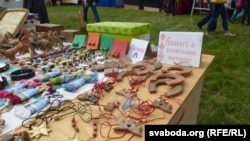 На сьвяце ў вышыванках былі ўкраінцы. Яны прапаноўвалі наведнікам набыць лялек, карціны ды выразаныя ў дрэве пано. Трымаліся госьці з Ўкраіны сьціпла.