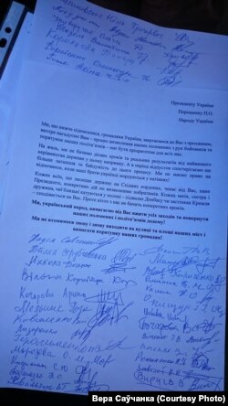 Удзельнікі акцыі падпісалі і перадалі ў Адміністрацыю прэзыдэнта зварот. «На жаль, мы не бачым дзейных крокаў ды рэальных вынікаў ад вышэйшага кіраўніцтва дзяржавы ў гэтым кірунку, а ў пэрыяд адпачынку мы назіраем зацішша і абыякавасьць да гэтага працэсу. Мы не маем права на адпачынак, пакуль нашыя браты-украінцы мардуюцца ў засьценках. Мы, украінскі народ, патрабуем ад вас зрабіць усё і вярнуць нашых палонных і палітвязьняў дадому», — адзначаецца ў звароце.