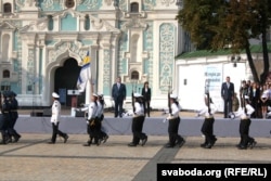 Ва ўрачыстасьцях удзельнічалі жаўнеры ўкраінскага войска і флёту, апранутыя ў новую ўніформу, якую нядаўна вырабілі на зьмену старой, савецкага ўзору.
