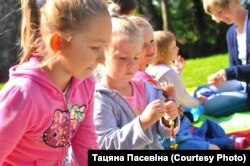 Пацеркі на нітачцы — як дзеці ў карагодзе. Гэтая мэтафара праходзіла чырвонай ніткай праз усе гульні і забавы ў летніку. На майстэрні па казкатэрапіі дзеткі зьбіралі пацеркі з пэрлінак і распавядалі па іх гісторыі. Пэрлінкі — чароўны матэрыял, які мы выкарыстоўвалі практычна ў кожнай падзелцы: і нанізвалі ў бранзалеты, і рабілі вочкі розным істотам, і набывалі рабінавыя пацеркі на кірмашы за гульнявыя грошы-пэрлінкі. А ўвечары дзеткі па чарзе бралі ў рукі вялікую пэрлінку і распавядалі ўсім, што іх найбольш уразіла за дзень.