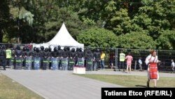 Некалькі соцень апазыцыйна настроеных дэманстрантаў не прапусьцілі на плошчу ўзмоцненыя кардоны паліцыі. Быў ужыты сьлезацечны газ.