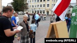 Наш пікет сёньняшні — лішні напамін пра тое, што зьмены ў краіне павінны адбыцца. Яны павінны адбыцца праз дэмакратычны мэханізм», — кажа ўдзельнік выбарчай кампаніі.
