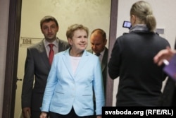 Сустракаць старшыню ЦВК ля ўваходу на ўчастак выйшаў сакратар Менскай гарадзкой выбарчай камісіі Арцём Цуран.