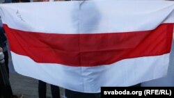 Першым на плошчы зьявіўся Зьміцер Дашкевіч зь бел-чырвона-белым сьцягам і трыма паплечнікамі.