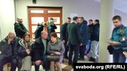 У залю пакуль не пускаюць. Пад дзьвярыма ўжо чакае каля двух дзясяткаў чалавек. Прынесьлі дадатковыя лавы.