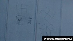 Адзін зь мінакоў паведаміў, што фашысцкае графіці зьявілася на прыпынку нядаўна. Мужчына выказаў меркаваньне, што ў гэтыя выходныя.