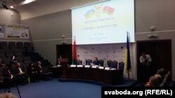 У залі, якую прадставіла Гандлёва-эканамічная палата Ўкраіны (яе кіраўнік Генадзь Чыжыкаў — ганаровы старшыня Ўсеўкраінскага саюза беларусаў, ён нарадзіўся ва Ўкраіне, але мае беларускія карані па бацьку) сабраліся пераважна людзі сталага ўзросту, прычым большасьць зь іх — былыя вайскоўцы. Рыторыка прамоў — адпаведная. Адзін з гасьцей з трыбуны заявіў, што лічыць захаваньне Беларусьсю абрэвіятуры і структуры КДБ — вялікім дасягненьнем. А прывітаньне былога пасла Ўкраіны ў Беларусі Ігара Ліхавога «Слава Украіне! Жыве Беларусь!» заля ўспрыняла моўчкі.
