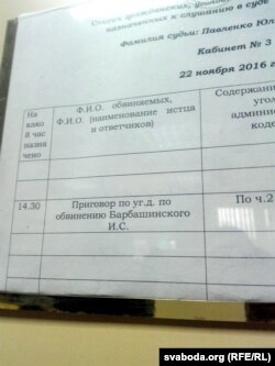 Барбашынскага прывялі на абвяшчэньне выраку на ланцугу. Відэа