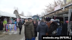 «У нас праблемаў няма. Нас усё задавальняе, — казалі прадпрымальнікі, калі зьявілася прадстаўніца адміністрацыі рынка. — Толькі пакупнікоў няма. Заробкаў у людзей няма. Неяк ім мала плацяць. А па падатках нас пакуль усё задавальняе».