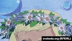У кастрычніку малюнак, зроблены на менскім доме расейскім мастаком Артурам Кашаком да Дня Расеі, дапоўнілі колкім дротам.