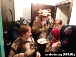 Марозны вечар ахутвае вёску. А ў бабулінай хаце адной з талаковак паўтара дзясятка хлопцаў, дзяўчат ды маладзіц зь дзецьмі, паспытаўшы куцьці й самаробнага квасу, прыбіраюцца ў строі сьвяточных пэрсанажаў.
