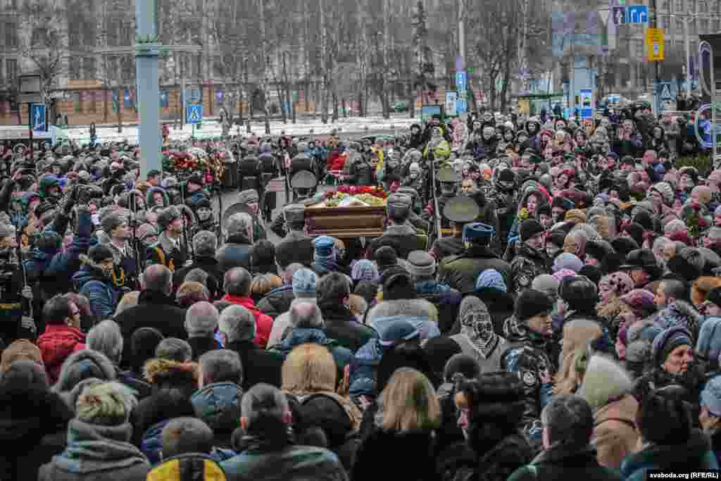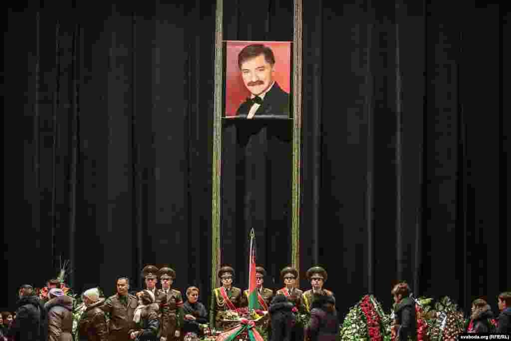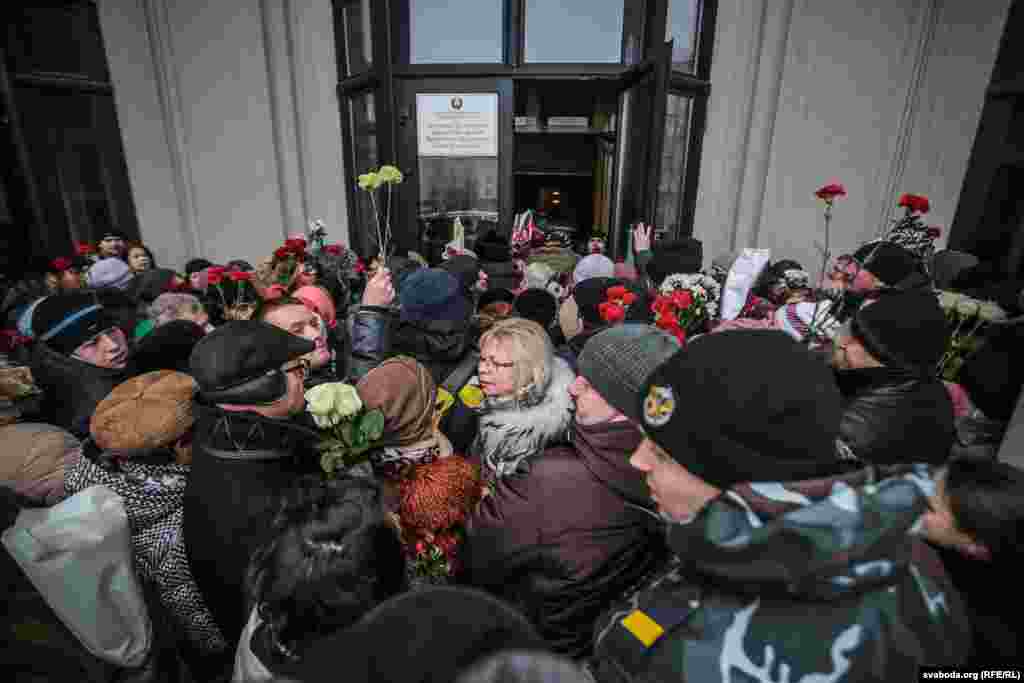 Затым працэсія накіравалася ў Беларускую дзяржаўную філярмонію, дзе да 14-й гадзіны праходзіла грамадзянская паніхіда, якую наведалі сотні людзей.