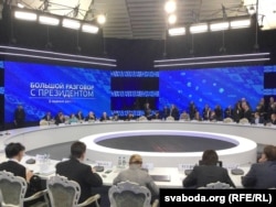 На сустрэчу з Аляксандрам Лукашэнкам сабралася каля 300 чалавек, у тым ліку журналісты, дэпутаты, міністры, экспэрты, прадстаўнікі грамадзкіх арганізацый, сьвятары розных канфэсій.