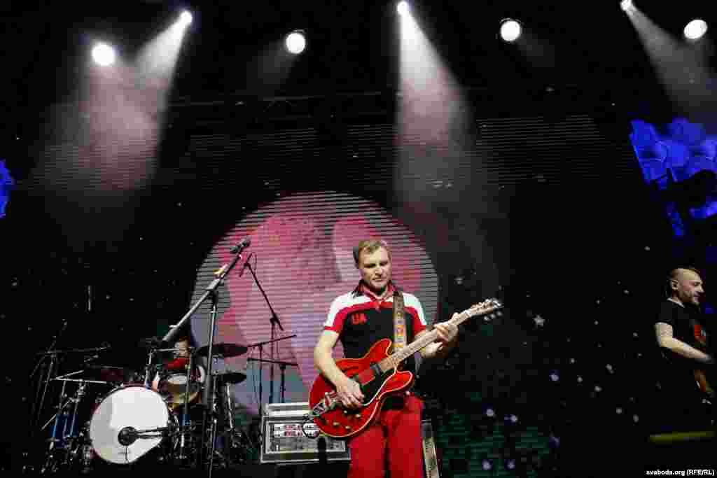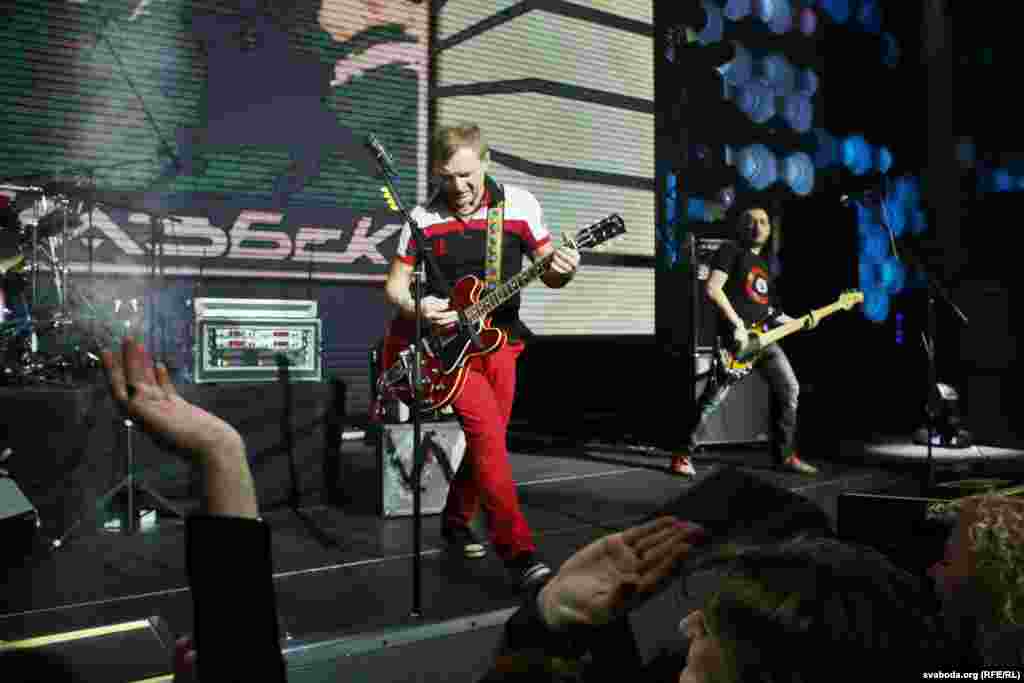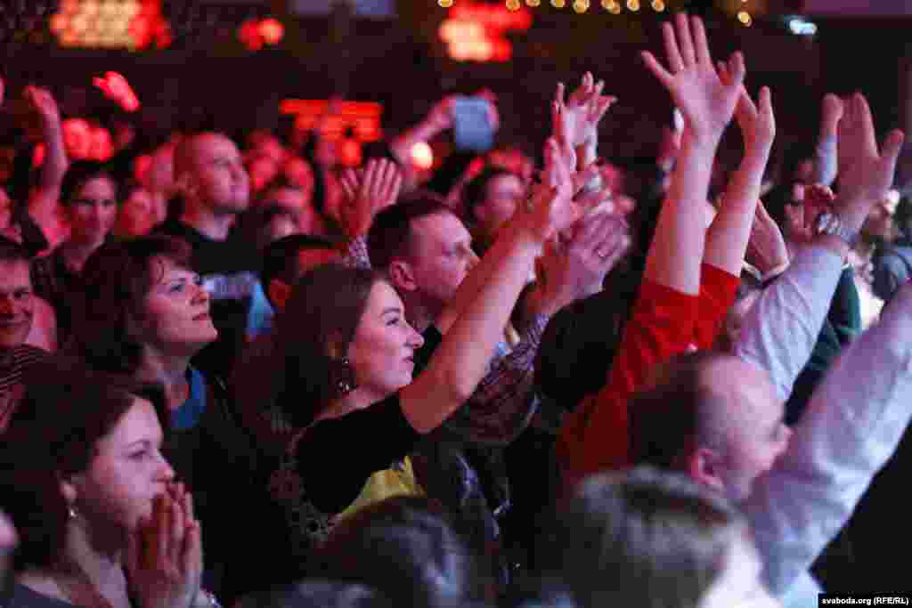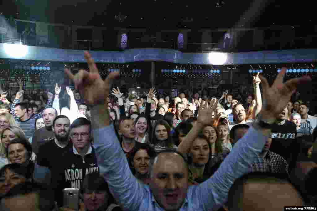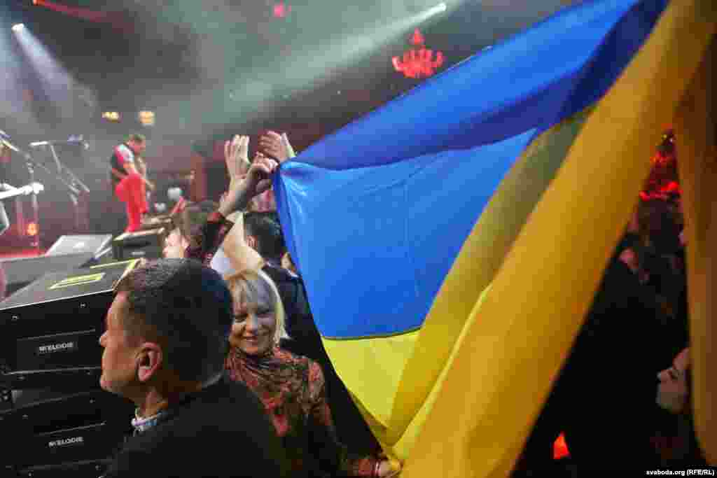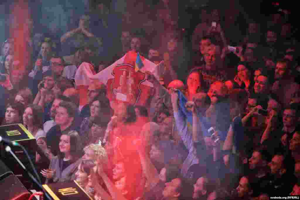 Бел-чырвона-белыя і блакітна-жоўтыя сьцягі на канцэрце «Воплі Відаплясава» у Менску ФОТА