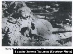 Крывальцэвіч: Цяжка сказаць. Гэта ўсе праводзіла Пракуратура БССР. Усе матэрыялы забралі экспэрты. Мы таксама ўсё фіксавалі і адлюстравалі ў нашых справаздачах. Манэты, партманэ, паперы дасьледавалі ў лябараторыях. Былі мэдычныя, балістычныя заключэньні, была экспэртыза каронак, тэхнікі пратэзаваньня. Усё рабілі вельмі добрыя спэцыялісты. Заключэньні былі дадзеныя надзвычай паўнавартасныя і глыбокія. Што адбывалася далей, я ня ведаю, і ніхто з нас ня ведае. Ці гэта захоўваецца? Трэба пытацца ў пракуратуры...