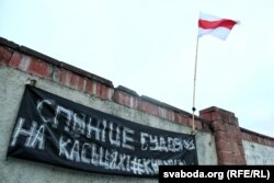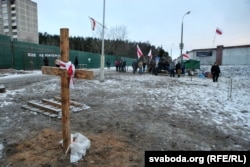 Яшчэ ўвечары на плоце ўздоўж кальцавой дарогі зьявілася чорная расьцяжка «Спыніце будоўлю на касьцях!». У лягеры цяпер разьмешчаныя 4 намёты і 6 бел-чырвона-белых сьцягоў.