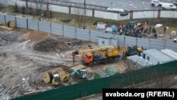 На раніцу 27 лютага пад будоўляй сабраліся каля 50 чалавек, за імі сочаць «людзі ў цывільным». Будаўнічыя работы прыпыненыя.