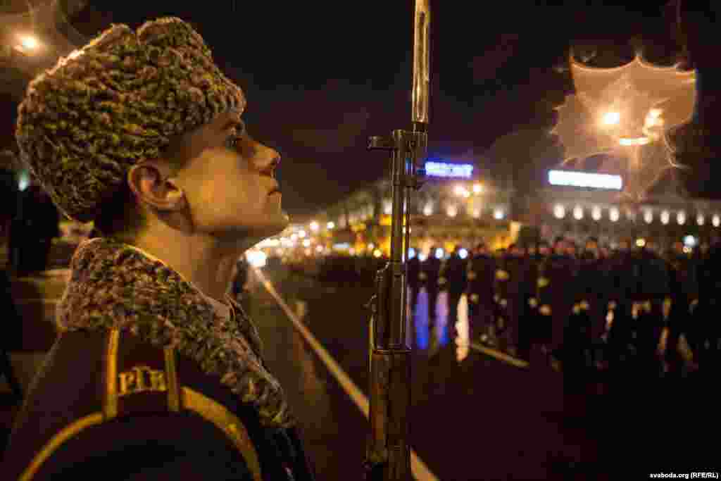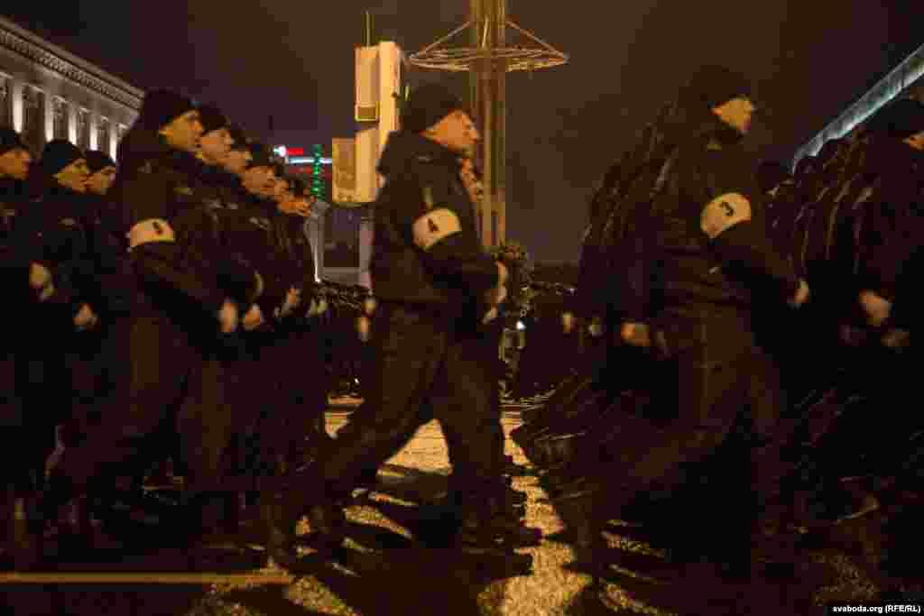 Рэпэтыцыя параду да 100-годьдзя беларускай міліцыі прайшла позна вечарам 1 сакавіка на праспэкце Незалежнасьці ў Менску. Рух усіх відаў транспарту быў перакрыты адразу на некалькіх цэнтральных вуліцах. Патрульныя машыны, спэцыяльная тэхніка ды прадстаўнікі сілавых структур прайшлі перад міністрам унутраных спраў Ігарам Шуневічам ды іншым кіраўніцтвам міліцыі.