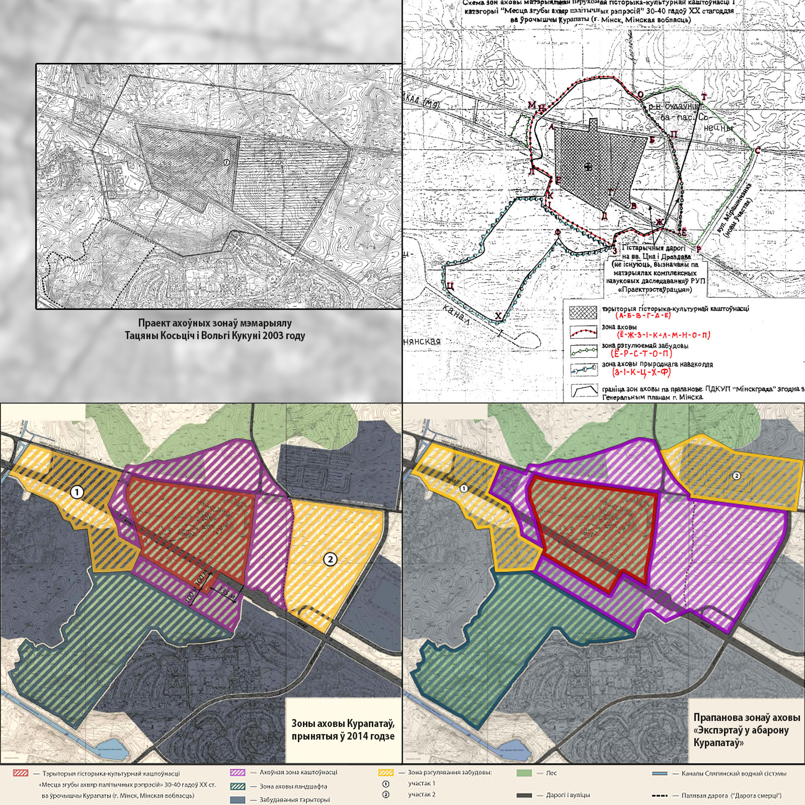 Новы праект ахоўных зонаў абапіраецца найперш на ранейшы праект Тацяны Косьціч і Вольгі Кукуні з «Праектрэстаўрацыі», выкананы ў 2003 годзе на замову Беларускай асацыяцыі ахвяраў палітычных рэпрэсіяў.