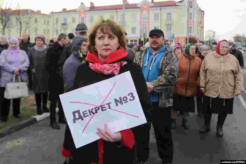 Каля трохсот жыхароў Рагачову сабраліся 12 сакавіка на галоўнай плошчы гораду каля райвыканкаму, каб выказаць сваё рашучае непрыняцьце дэкрэту №3.